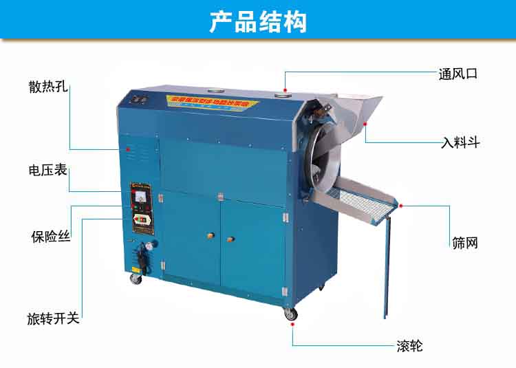 2.旭朗炒貨機(jī)采用獨(dú)特的滾筒臥式結(jié)構(gòu),加熱均勻,密封性好,燜炒效果好。同時(shí)結(jié)構(gòu)上今年進(jìn)行了
