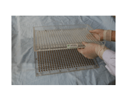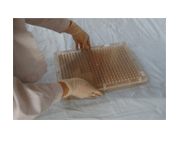 膠囊帽排列好后,倒出多余膠囊帽,取下導(dǎo)向板