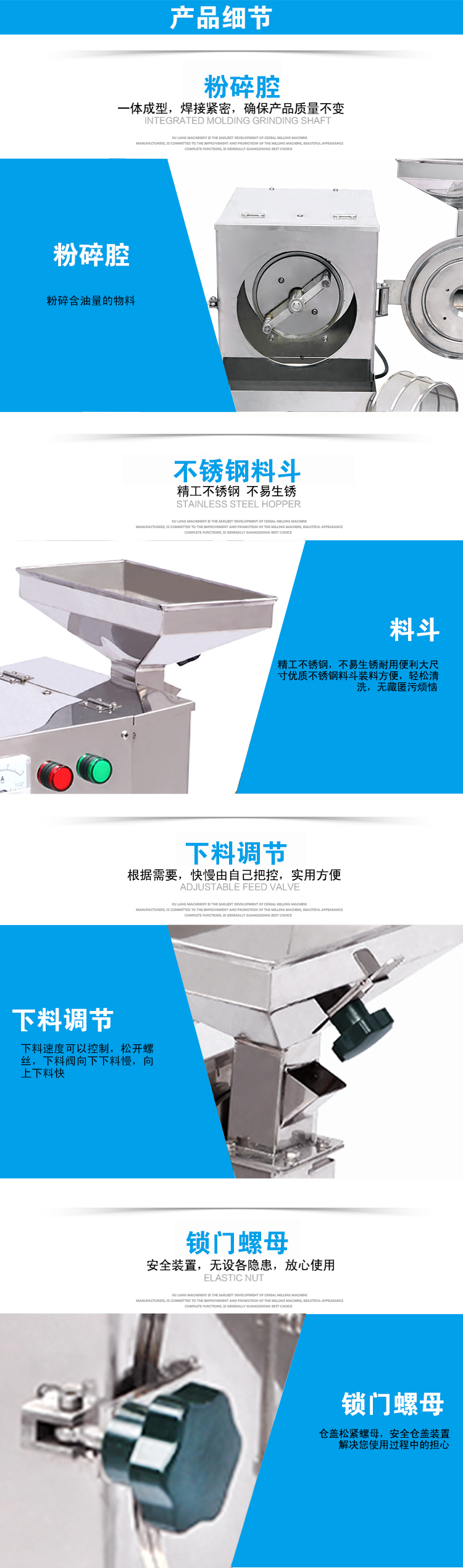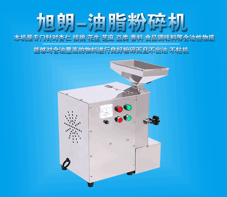 本機(jī)是專門針對杏仁、核桃、花生、芝麻、豆類、香料、食品調(diào)味料等含油性物質(zhì)在粉碎和磨粉時(shí)容易出油、粘機(jī)的