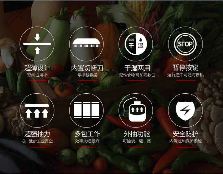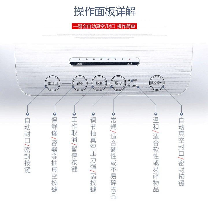 1、全自動(dòng)智能抽氣封口一步完成,操作簡(jiǎn)便。
